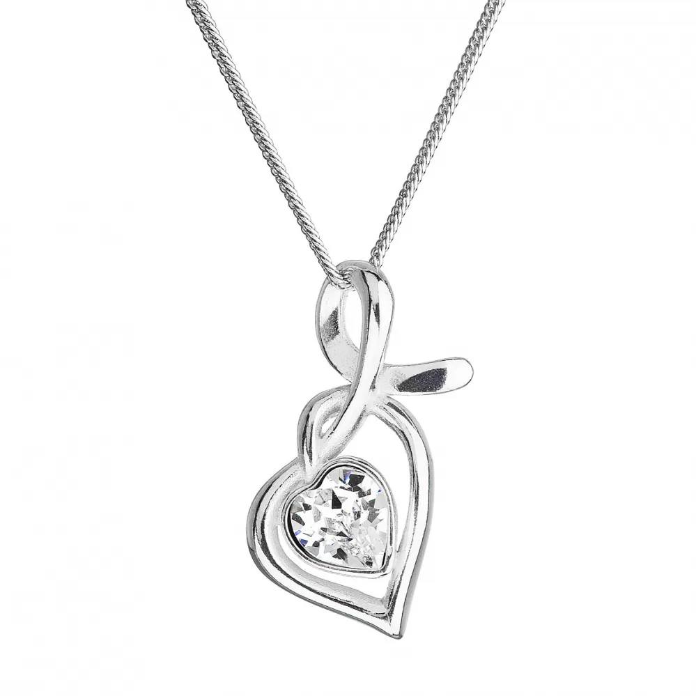 Strieborný náhrdelník so Swarovski kryštálmi srdce biele 32071.1