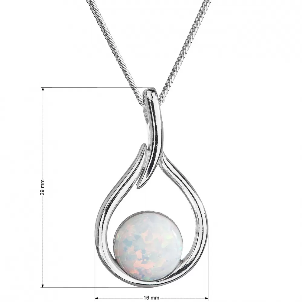 Strieborný náhrdelník so syntetickým opálom biela kvapka 12045.1