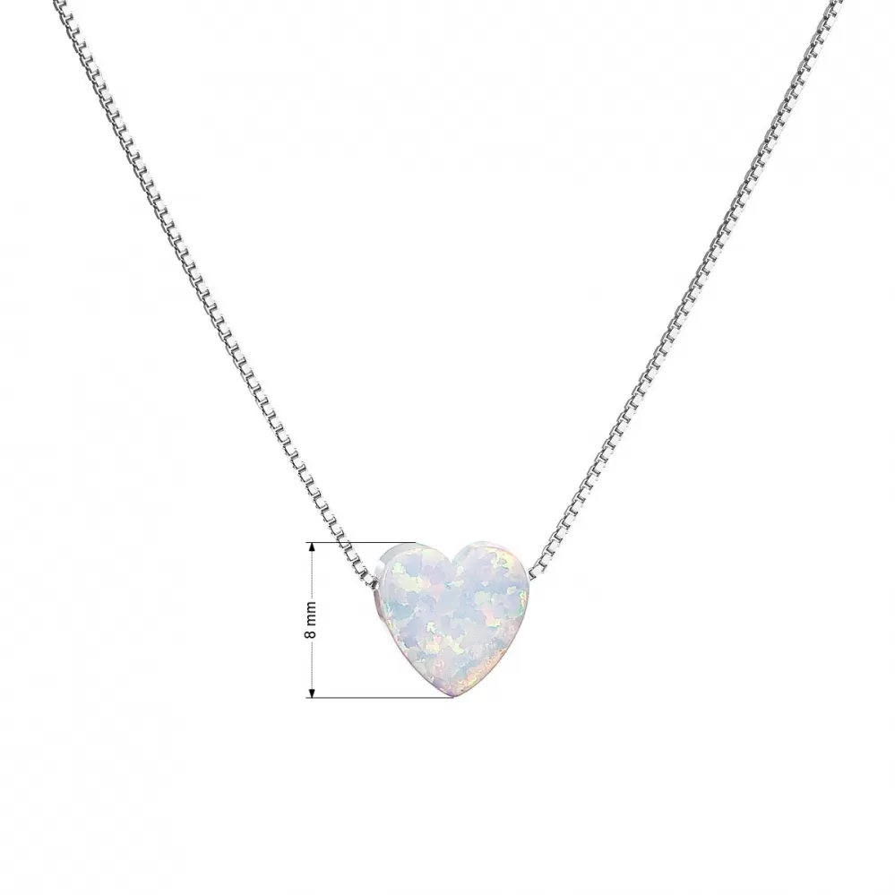Strieborný náhrdelník so syntetickým opálom biele srdce 12048.1