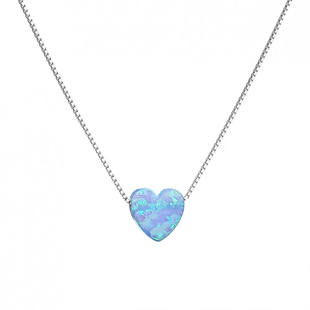Strieborný náhrdelník so syntetickým opálom svetlo modré srdce 12048.3