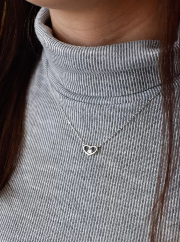 Strieborný náhrdelník so zirkónom biele srdce 12008.1