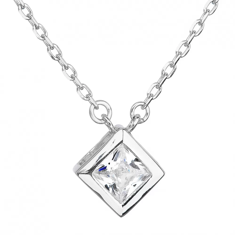 Strieborný náhrdelník so zirkónom biely kosoštvorec 12031.1