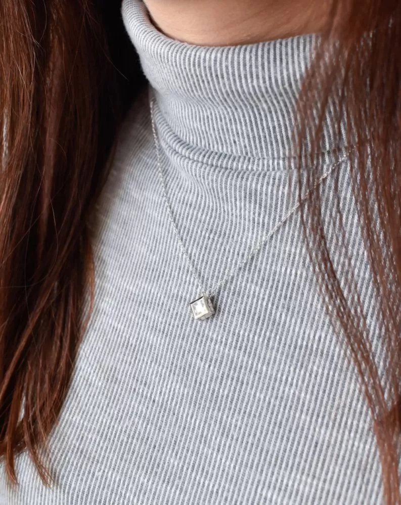 Jemnosť, prirodzenosť a čistota vyžaruje z kosoštvorcového náhrdelníka s čírym zirkónom.