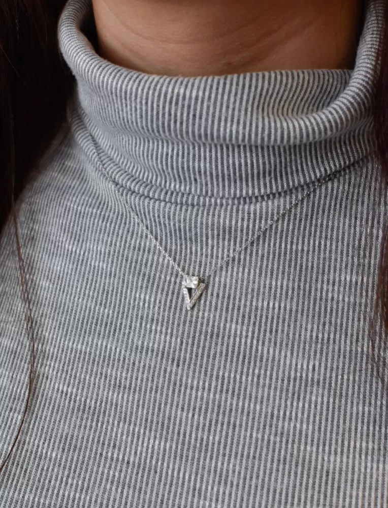 Náhrdelník v tvare trojuholníka je osadený bielymi zirkónmi.