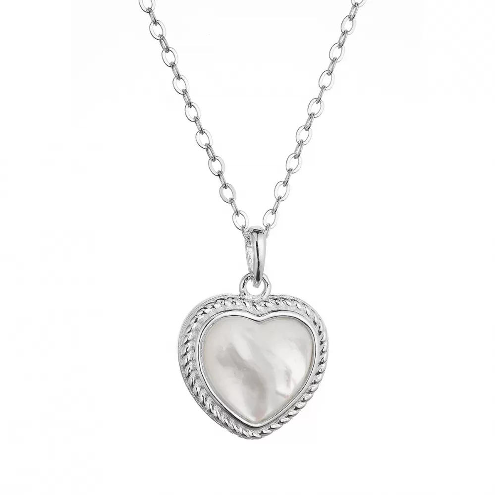 Romantický srdiečkový náhrdelník zdobený bielou perleťou pristane každej nežnej duši.  Náhrdelník v tvare srdca 12058.1 je vyrobený zo striebra s… Celý popis