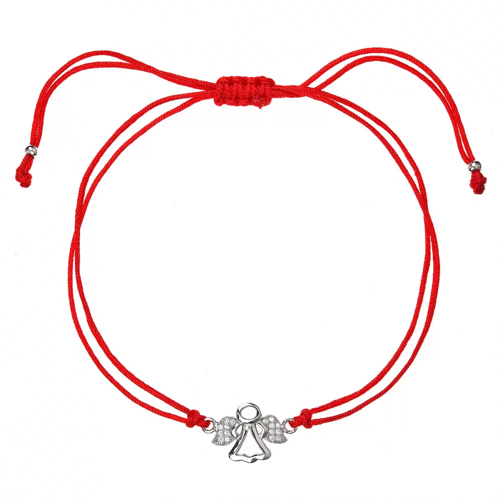 Kabbalah červený náramok proti uhranutiu strieborný anjel so zirkónmi 13020.3
