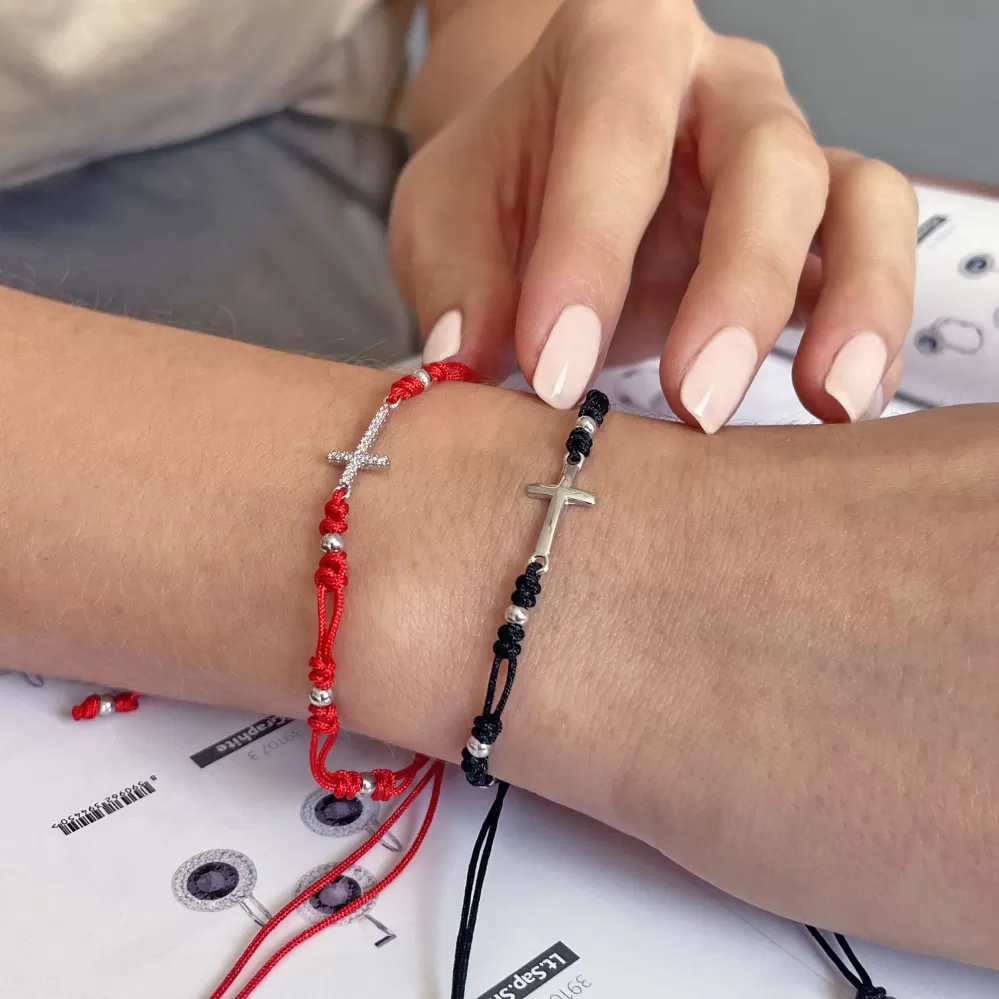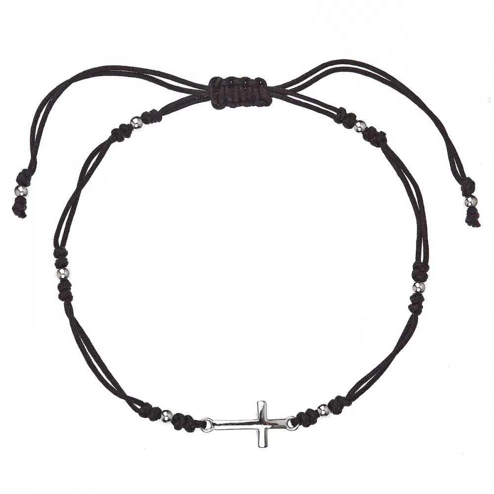 Kabbalah čierny náramok proti uhranutiu strieborný krížik 13023.3