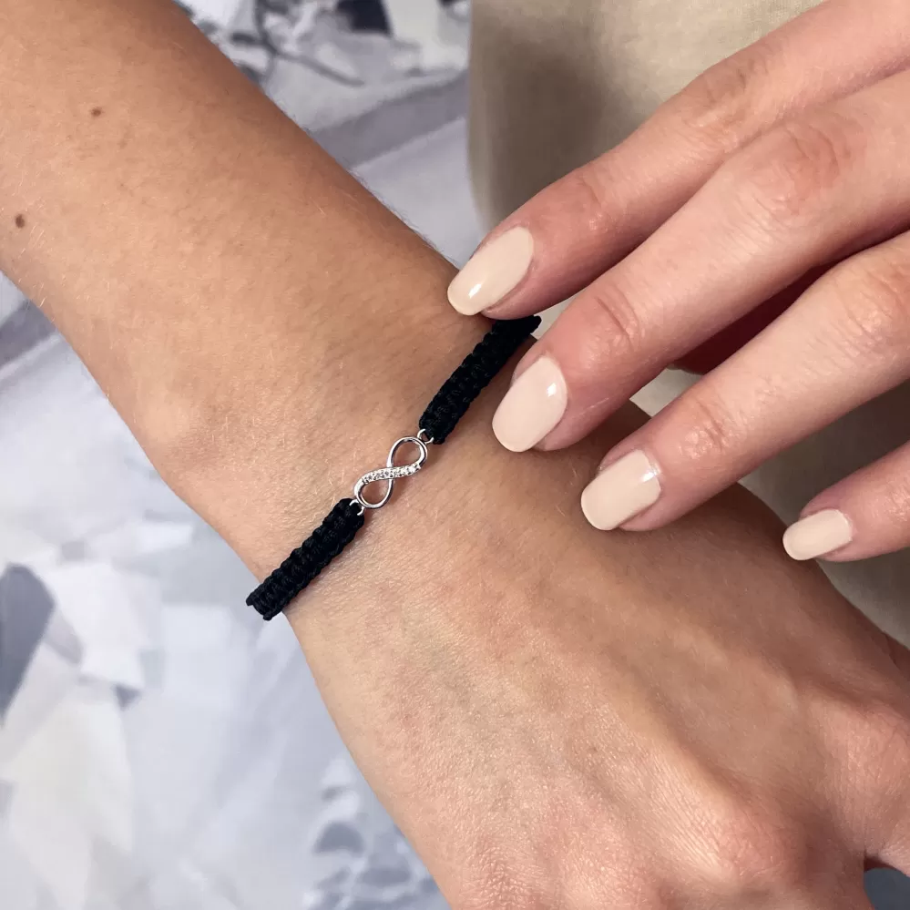 Textilný náramok je dozdobený komponentom v tvare nekonečna, ktorý je vyrobený z rhodiovaného striebra 925/1000. Nekonečno môže vyjadrovať pevnosť zväzku i priateľstva alebo nekonečnú oddanosť rodine...
