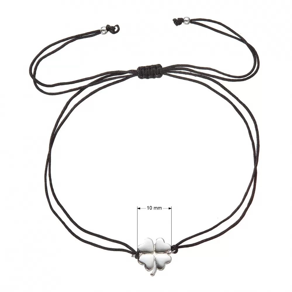 Dĺžka náramku 13047.3 sa reguluje posúvaním šnúrky v uzle, maximálne 25 cm. Strieborný štvorlístok je vyrobený z rhodiovaného striebra 925/1000 a môžu ho bez problémov. > Šperk dodávame zabalený v darčekovom balení.