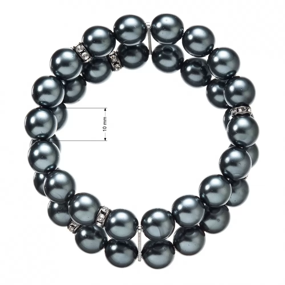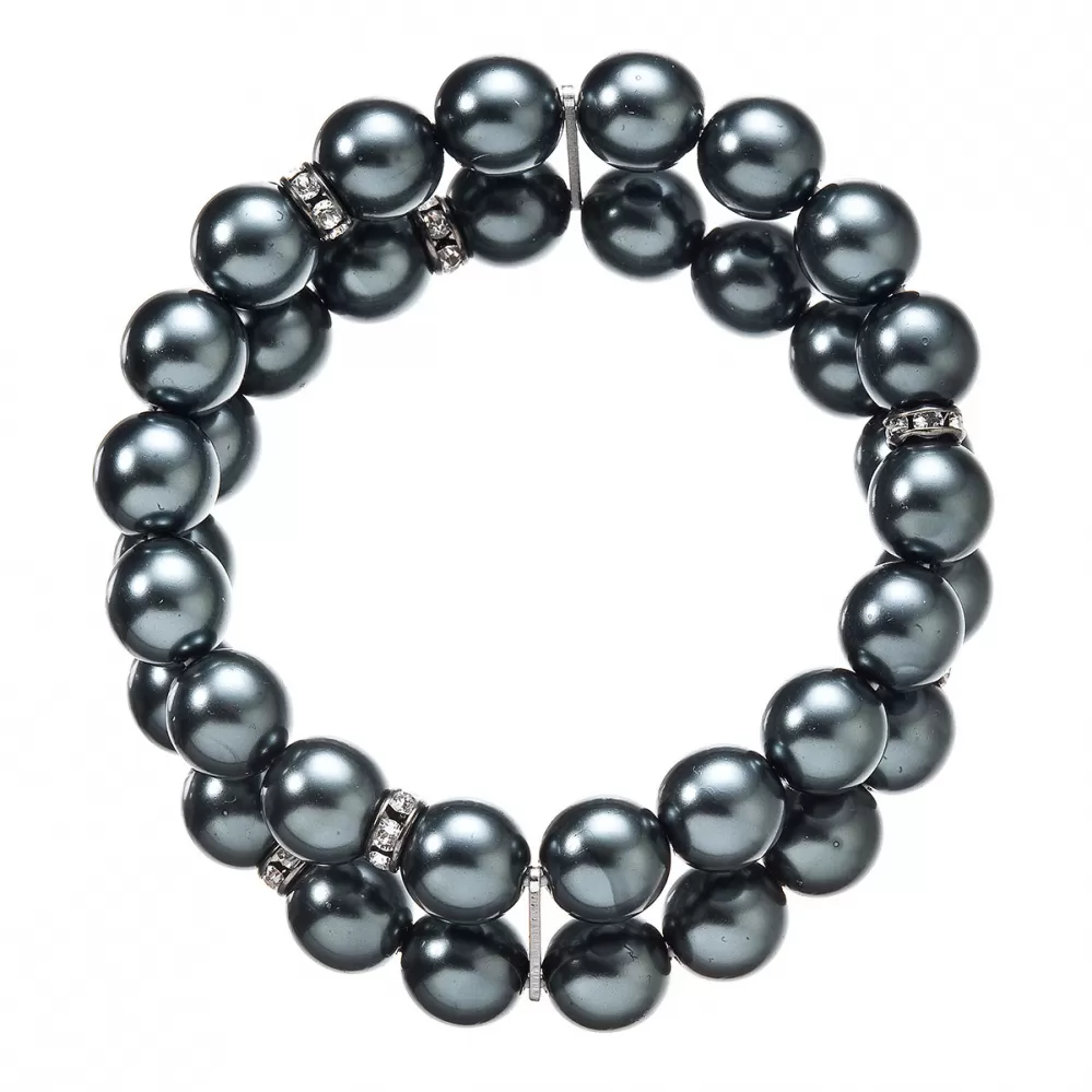 Dvojradový náramok 33065.3 je z tahitej syntetických perál medzi ktoré sú vložené bižutérne metal rondelky vysadené kryštálmi. Kryštály sú v bielej farbe. Obanáramky sú spojenéjemným strieborným komponentom. Dĺžka náramku je 17,5 cm, je pružného materiálu a tak sa prispôsobí veľkosti zápästia. Na rondelky bol použitý bižutérny kov, ktorého povrch prešiel úpravou ródiom.