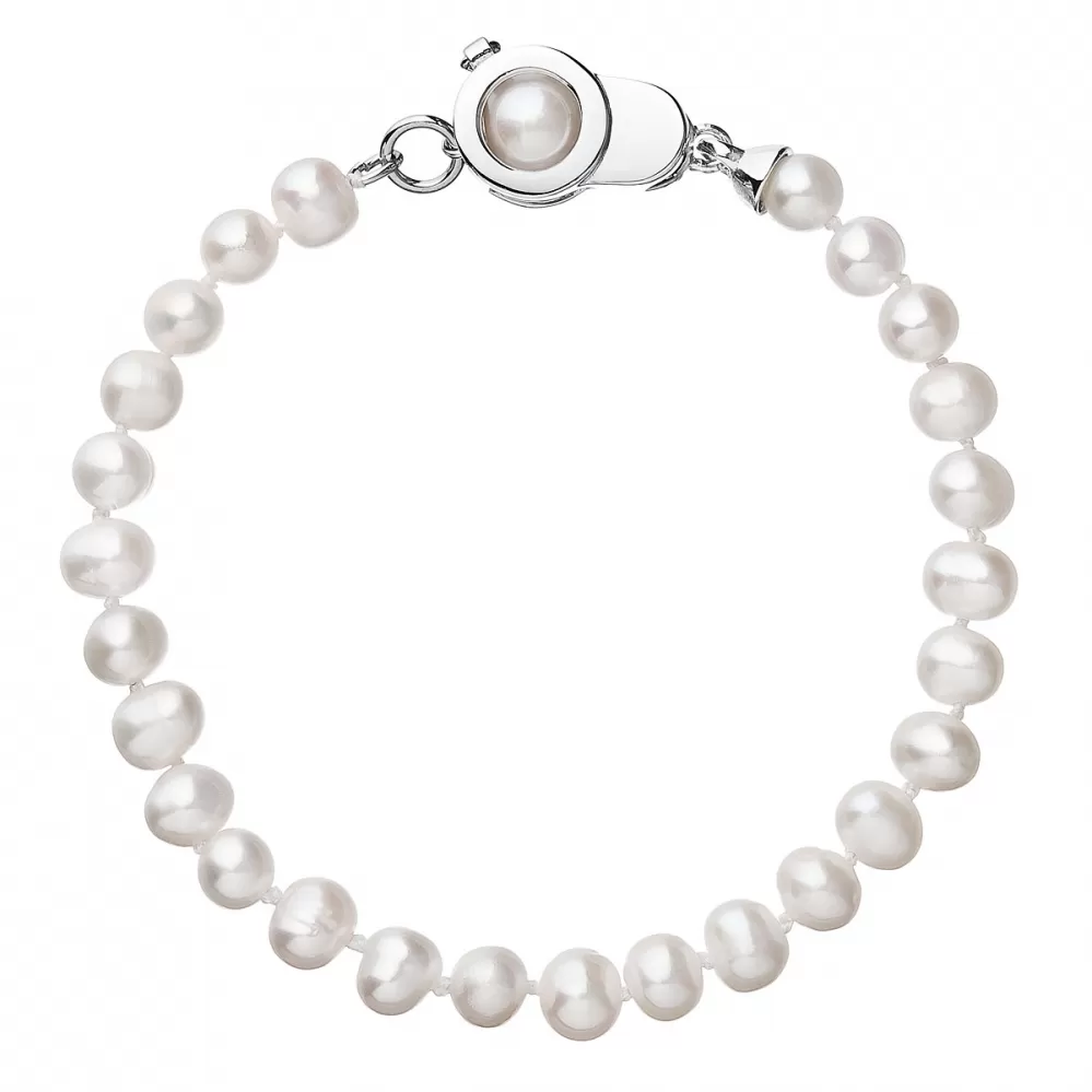 Klasickým perlovým náramkom nepokazíte žiadny outfit. Perlový náramok o dĺžke 19,5 cm je zložený z celkom 26 oválnych riečnych perál veľkosti 5,5 - 6 mm v bielej farbe. Každá perla je zabezpečená uzlíkovou väzbou, sa pri nechcenom pretrhnutí náramku nestane, že sa vám perly rozkotúľajú na všetky strany. Jedna perlička naviac sa ešte ukrýva v zaujímavo riešenom striebornom zapínaní. s bezpečnostnou poistkou. br /> Náramok z perál 23006.1 pre váspoctivo ručne navlieklinaše šikovné šperkárky. Ručnú prácu vám doloží pečať kvality, ktorú výrobok obsahuje. /strong>, ktorý nájdete priložený v krabičke pri šperku.