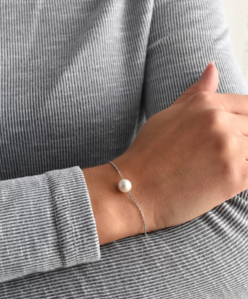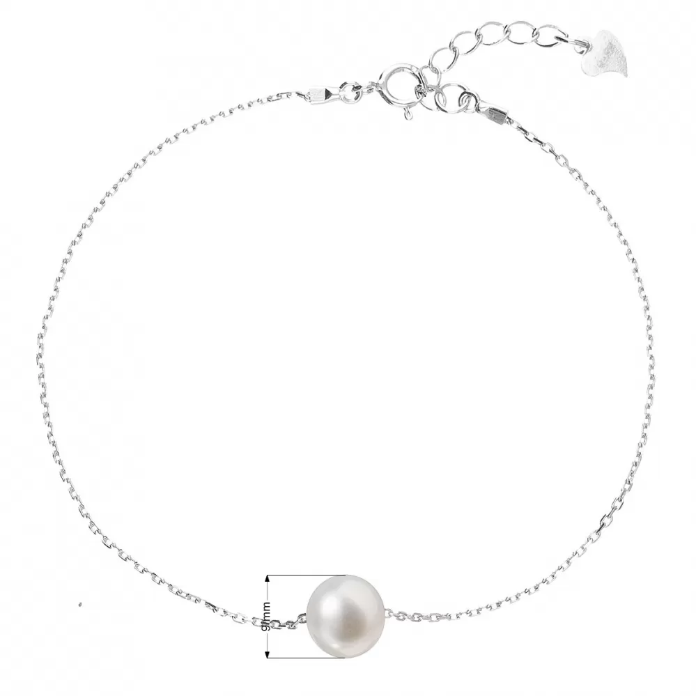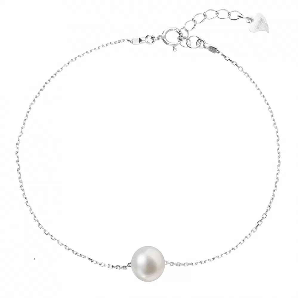 Jemný náramok o dĺžke 18 + 2,5 cm predĺženie je vyrobený zo striebra o rýdzosti 925/1000 vrátane povrchovej úpravy ródiom a je doplnený okrúhlou riečnou perlou o šírke 8 mm tej kvality AA v bielej farbe. Milou ozdobou je aj malé strieborné srdiečko, ktoré náramok zakončuje.  Náramok neobsahuje nikel, a tak ho na ruke môžu nosiť aj alergici.