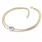 Chcete Vaši milé či blízké osobě udělat radost s něčím, co nikdo jiný nemá? Kupte jí tento náramek v kombinaci žlutého a bílého čtrnáctikarátového zlata 585/1000 s diamanty! Náramek tvoří dva řetízky typu anker s lesklými facetami na každém očku a s kroužkem uprostřed. V kroužku je vsazeno sedm kulatých diamantů barvy Champagne, vybroušených kulatým briliantovým brusem, který zajišťuje maximální brilanci vybroušených facet ze všech úhlů pohledu! Vsazování diamantů provádějí naši nejzkušenější mistři zlatníci ručně pod mikroskopem s přesností na 0,01mm a proto nehrozí vypadnutí diamantů jako to bývá u strojně vyráběných šperků.