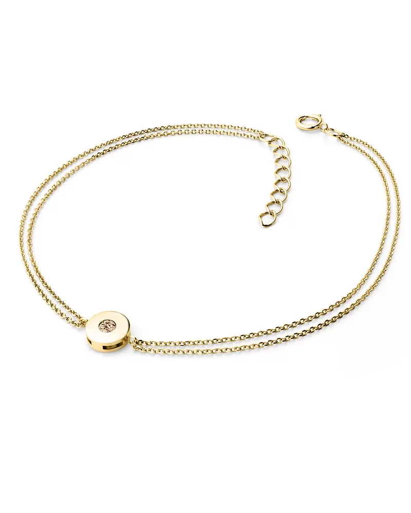 S tímto náramkem budete mít zaručeně úspěch! Tento elegantní náramek je vyroben ze žlutého čtrnáctikarátového zlata - 585/1000 v lesklé povrchové úpravě. Skládá se z dvojitého řetízku typu anker, který má facetované očka - facety jsou zhotoveny diamantovým nástrojem, který dodává vzniklým facetám maximální lesk, díky kterému dokonale odráží světlo a mají krásnou brilanci ze všech úhlů pohledu! Uprostřed řetízků je v obrubě zatepán "na hladko" jeden kulatý diamant barvy Champagne vybroušený briliantovým brusem, který zajišťuje maximální brilanci vybroušených facet! Vsazování diamantů provádějí naši nejzkušenější mistři zlatníci ručně pod mikroskopem s přesností na 0,01mm a proto nehrozí vypadnutí kamínků jako to bývá u strojně vyráběných šperků.