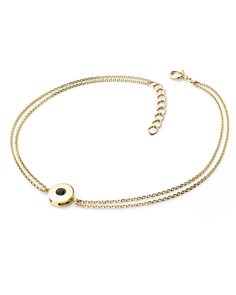 S tímto náramkem budete mít zaručeně úspěch! Tento elegantní náramek je vyroben ze žlutého čtrnáctikarátového zlata - 585/1000 v lesklé povrchové úpravě. Skládá se z dvojitého řetízku typu anker, který má facetované očka - facety jsou zhotoveny diamantovým nástrojem, který dodává vzniklým facetám maximální lesk, díky kterému dokonale odráží světlo a mají krásnou brilanci ze všech úhlů pohledu! Uprostřed řetízků je v obrubě zatepán "na hladko" jeden kulatý diamant černé barvy vybroušený briliantovým brusem. Vsazování diamantů provádějí naši nejzkušenější mistři zlatníci ručně pod mikroskopem s přesností na 0,01mm a proto nehrozí vypadnutí kamínků jako to bývá u strojně vyráběných šperků.