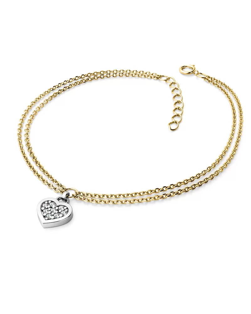 Náramok žlté zlato s bielym srdiečkom a diamantmi 10881-NR02-ZLB