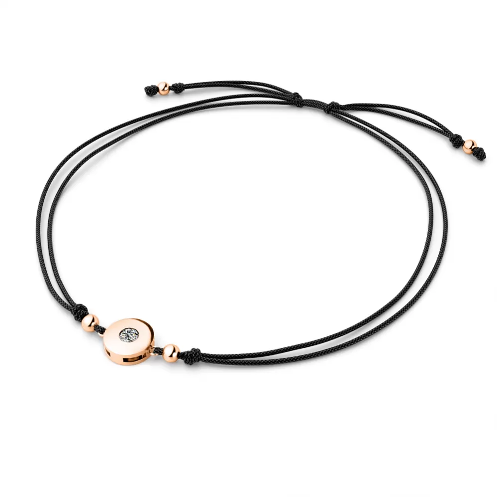 Náramek kabbalah je vyroben ze šňůrky černé barvy, kulaté ozdoby a kuliček z růžového čtrnáctikarátového zlata - 585/1000. V ozdobě je vsazen jeden kulatý diamant briliantového brusu, který zajišťuje maximální brilanci vybroušených facet diamantu, dokonale odráží světlo a krásně září z každého úhlu pohledu! Diamant je zatepaný "na hladko" přímo do ozdoby. Vsazování diamantů provádějí naši nejzkušenější mistři zlatníci ručně pod mikroskopem s přesností na 0,01mm a proto nehrozí vypadnutí kamínků jako to bývá u strojně vyráběných šperků.