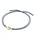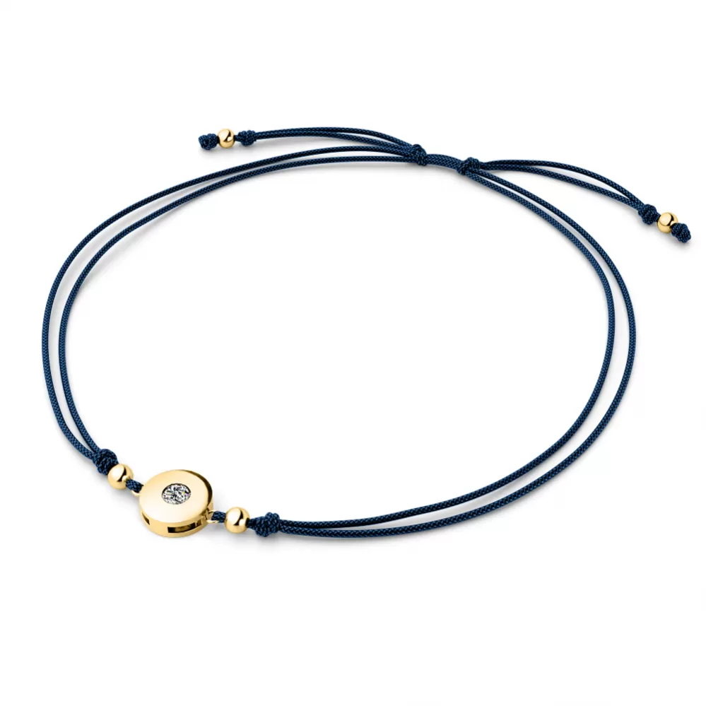 Náramek kabbalah je vyroben ze šňůrky modré barvy - navy blue, kulaté ozdoby a kuliček ze žlutého čtrnáctikarátového zlata - 585/1000. V ozdobě je vsazen jeden kulatý diamant briliantového brusu, který zajišťuje maximální brilanci vybroušených facet diamantu, dokonale odráží světlo a krásně září z každého úhlu pohledu! Diamant je zatepaný "na hladko" přímo do ozdoby. Vsazování diamantů provádějí naši nejzkušenější mistři zlatníci ručně pod mikroskopem s přesností na 0,01mm a proto nehrozí vypadnutí kamínků jako to bývá u strojně vyráběných šperků.