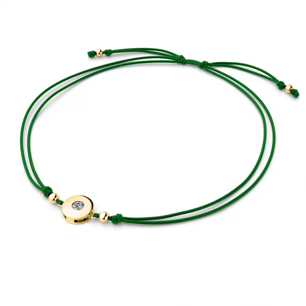 Náramek kabbalah je vyroben ze šňůrky zelené barvy, kulaté ozdoby a kuliček ze žlutého čtrnáctikarátového zlata - 585/1000. V ozdobě je vsazen jeden kulatý diamant briliantového brusu, který zajišťuje maximální brilanci vybroušených facet diamantu, dokonale odráží světlo a krásně září z každého úhlu pohledu! Diamant je zatepaný "na hladko" přímo do ozdoby. Vsazování diamantů provádějí naši nejzkušenější mistři zlatníci ručně pod mikroskopem s přesností na 0,01mm a proto nehrozí vypadnutí kamínků jako to bývá u strojně vyráběných šperků.