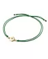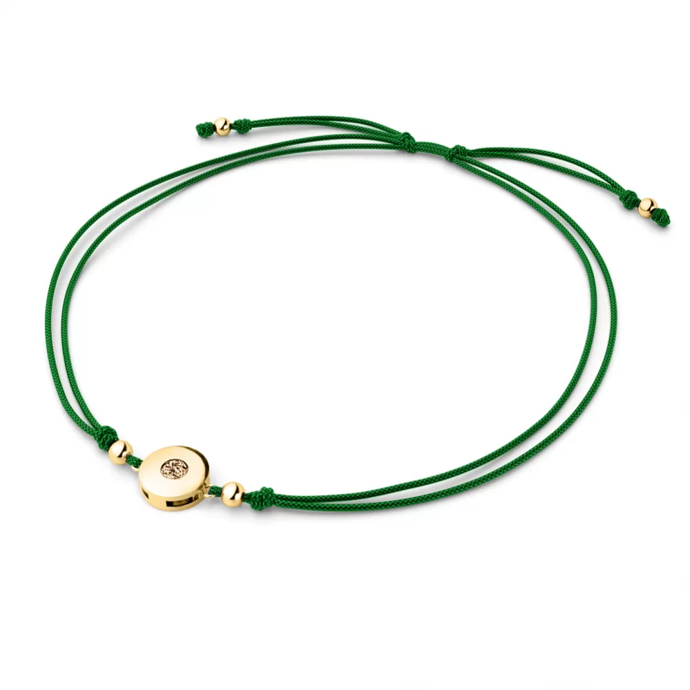 Náramek kabbalah je vyroben ze šňůrky zelené barvy, kulaté ozdoby a kuliček ze žlutého čtrnáctikarátového zlata - 585/1000. V ozdobě je vsazen jeden kulatý diamant barvy Champagne. Diamant je vybroušený briliantovým brusem, který zajišťuje maximální brilanci vybroušených facet diamantu, dokonale odráží světlo a krásně září z každého úhlu pohledu! Diamant je zatepaný "na hladko" přímo do ozdoby. Vsazování diamantů provádějí naši nejzkušenější mistři zlatníci ručně pod mikroskopem s přesností na 0,01mm a proto nehrozí vypadnutí kamínků jako to bývá u strojně vyráběných šperků.