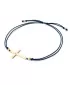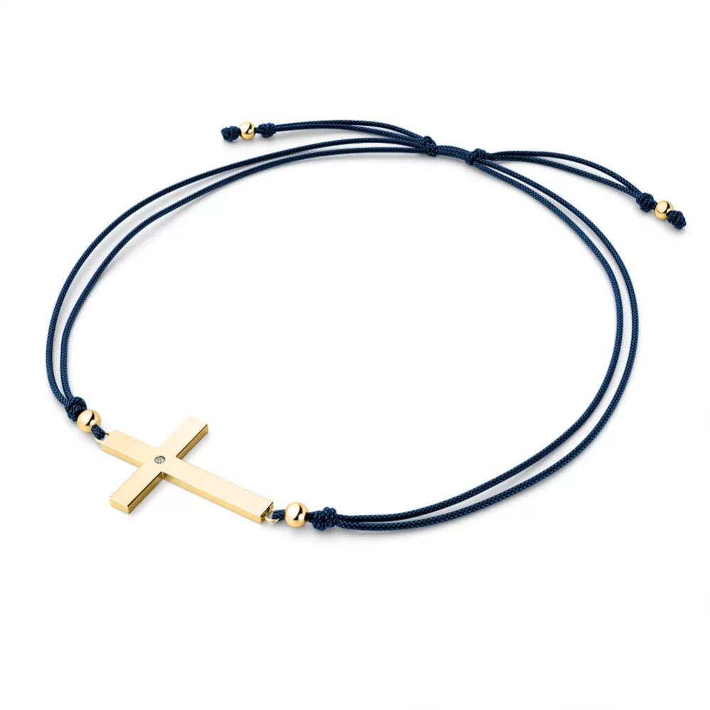 Náramek je vyroben ze šňůrky modré barvy, křížku a kuliček ze žlutého čtrnáctikarátového zlata - 585/1000. V křížku je vsazen jeden kulatý diamant briliantového brusu, který zajišťuje maximální brilanci vybroušených facet diamantu, dokonale odráží světlo a krásně září z každého úhlu pohledu! Diamant je zatepaný "na hladko" přímo do kříže. Vsazování diamantů provádějí naši nejzkušenější mistři zlatníci ručně pod mikroskopem s přesností na 0,01mm a proto nehrozí vypadnutí kamínků jako to bývá u strojně vyráběných šperků.