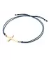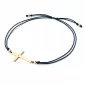 Náramek je vyroben ze šňůrky modré barvy, křížku a kuliček ze žlutého čtrnáctikarátového zlata - 585/1000. V křížku je vsazen jeden kulatý… Celý popis