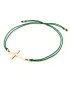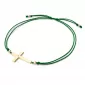 Náramek je vyroben ze šňůrky zelené barvy, křížku a kuliček ze žlutého čtrnáctikarátového zlata - 585/1000. V křížku je vsazen jeden kulatý diamant barvy Champagne. Diamant je vybroušený briliantovým brusem, který zajišťuje maximální brilanci vybroušených facet, dokonale odráží světlo a krásně září z každého úhlu pohledu! Diamant je zatepaný "na hladko" přímo do kříže. Vsazování diamantů provádějí naši nejzkušenější mistři zlatníci ručně pod mikroskopem s přesností na 0,01mm a proto nehrozí vypadnutí kamínků jako to bývá u strojně vyráběných šperků.