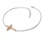 Náramok je vyrobený z bieleho a ružového štrnásťkarátového zlata - 585/1000 a tvorí ho retiazka typu anker s lesklými facetami na každom očku. Facety sú zhotovené diamantovým nástrojom, ktorý dodáva vzniknutým facetám krásny lesk a ligot. Uprostred retiazky je kríž. Celý náramok je v lesklej povrchovej úprave. V krížiku je vsadených jedenásť okrúhlych diamantov briliantového brusu, ktorý zaisťuje maximálnu brilanciu vybrúsených facet diamantu, dokonale odráža svetlo a krásne žiari z každého uhla pohľadu! Diamanty sú vsadené do krížika pomocou krapien. Vsadzovanie diamantov vykonávajú naši najskúsenejší majstri zlatníci ručne pod mikroskopom s presnosťou na 0,01mm a preto nehrozí vypadnutie kamienkov ako to býva pri strojne vyrábaných šperkoch.