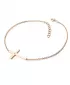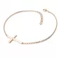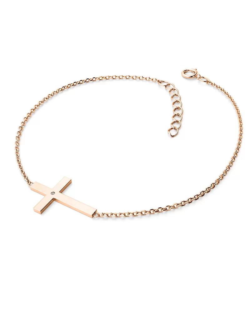 Náramek je vyroben z růžového čtrnáctikarátového zlata - 585/1000 a tvoří ho řetízek typu anker s lesklými facetami na každém očku. Facety jsou zhotoveny diamantovým nástrojem, který dodává vzniklým facetám krásný lesk a třpyt. Uprostřed řetízku je kříž. Celý náramek je v lesklé povrchové úpravě. V křížku je vsazen jeden kulatý diamant briliantového brusu, který zajišťuje maximální brilanci vybroušených facet diamantu, dokonale odráží světlo a krásně září z každého úhlu pohledu! Diamant je zatepaný "na hladko" přímo do kříže. Vsazování diamantů provádějí naši nejzkušenější mistři zlatníci ručně pod mikroskopem s přesností na 0,01mm a proto nehrozí vypadnutí kamínků jako to bývá u strojně vyráběných šperků.
