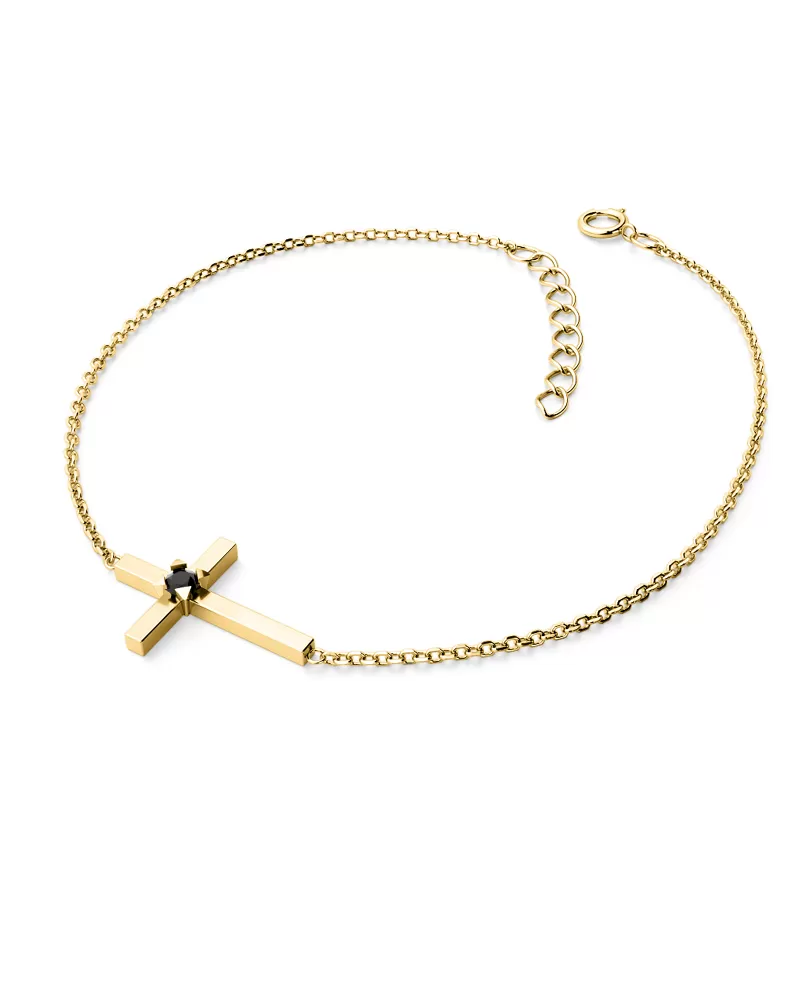 Dámsky náramok žlté zlato 585/1000 prírodný diamant 0,035 ct kríž s čiernym 10872-NR01-ZL-Black