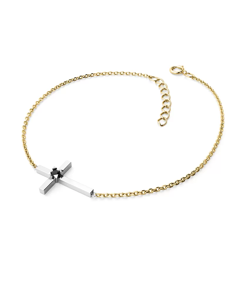 Dámsky náramok žlté zlato 585/1000 prírodný diamant 0,035 ct krížik s čiernym 10872-NR01-ZLB-Black