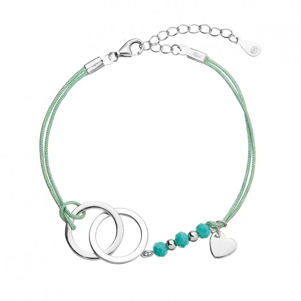 Krúžky, srdiečko a guličky sú vyrobené z rhodiovaného striebra 925/1000 a navyše náramok zdobia fazetované korálky v tyrkysovej farbe.