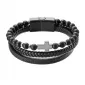 Náramok pánsky koženka a korálky s krížikom 43044.3 čierny