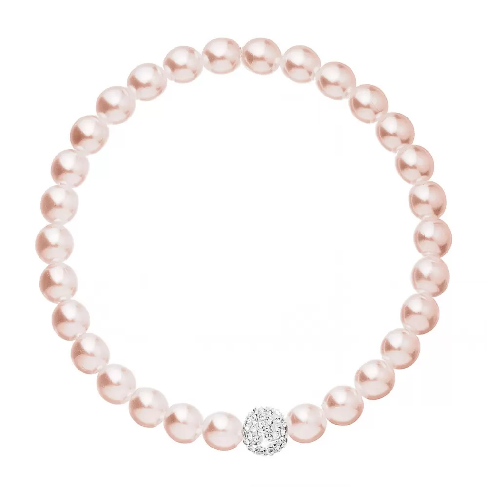 Perlový náramok 33115.3 v dĺžke 16 cm je poskladaný z malých ružových perál, medzi ktoré je navlečená gulička vysadená mnohými Preciosa kryštáliky v bielej farbe. Náramok je vhodný aj pre alergikov, neobsahuje totiž žiadny nikel.