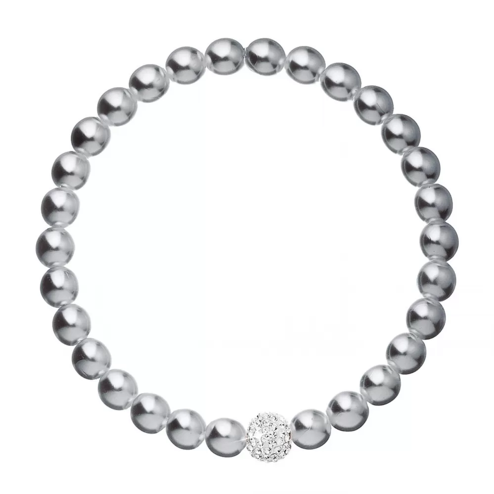 Perlový náramok 33115.3 v dĺžke 16 cm je poskladaný z malých šedých perál, medzi ktoré je navlečená gulička vysadená mnohými Preciosa kryštáliky v bielej farbe. Náramok je vhodný aj pre alergikov, neobsahuje totiž žiadny nikel.