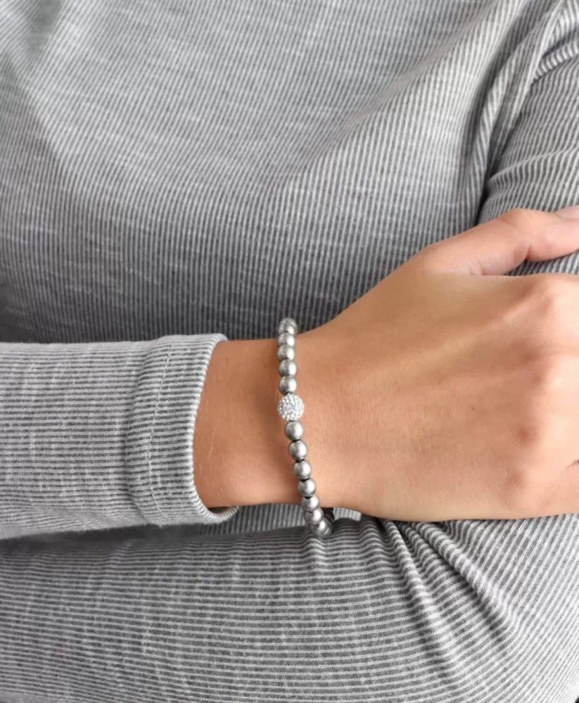 • náramok je navyše ozdobený ešte striebornou guličkou s Preciosa kryštálmi