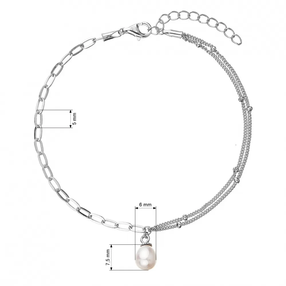 Náramok 23014.1 je vyrobený zo striebra rýdzosti 925/1000, ktoré prešlo povrchovou úpravou ródiom. Ródium chráni šperk proti sčerneniu, zožltnutiu i poškriabaniu. Retiazkový náramok je ozdobený oválnou bielou riečnou perličkou o veľkosti 7,5 x 6 mm a kvality A. Keďže šperk neobsahuje žiadny prídavok niklu, môžu ho bez obáv nosiť aj alergici.