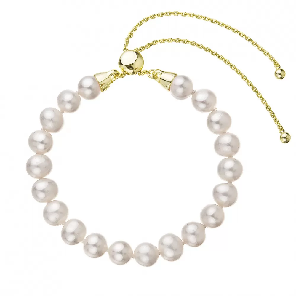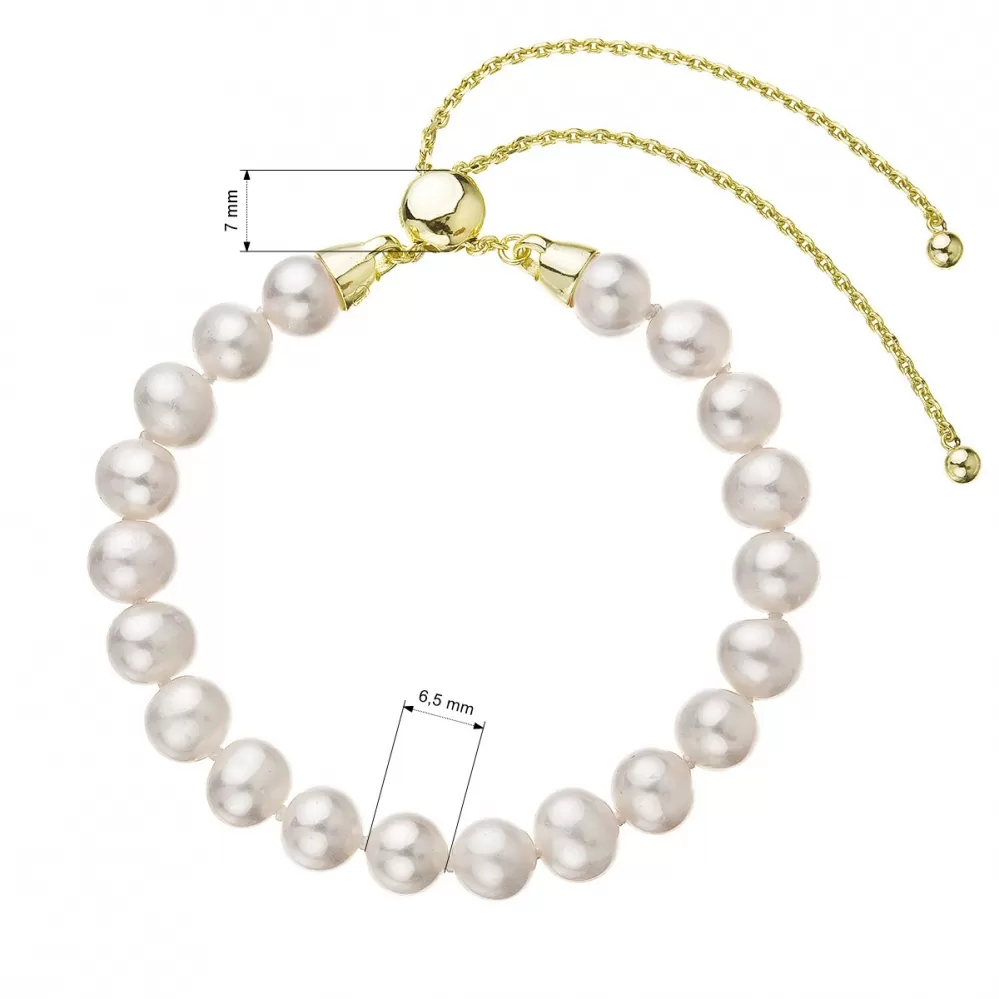 Pozlátený náramok z pravých riečnych perál biely nastaviteľný 23023.1