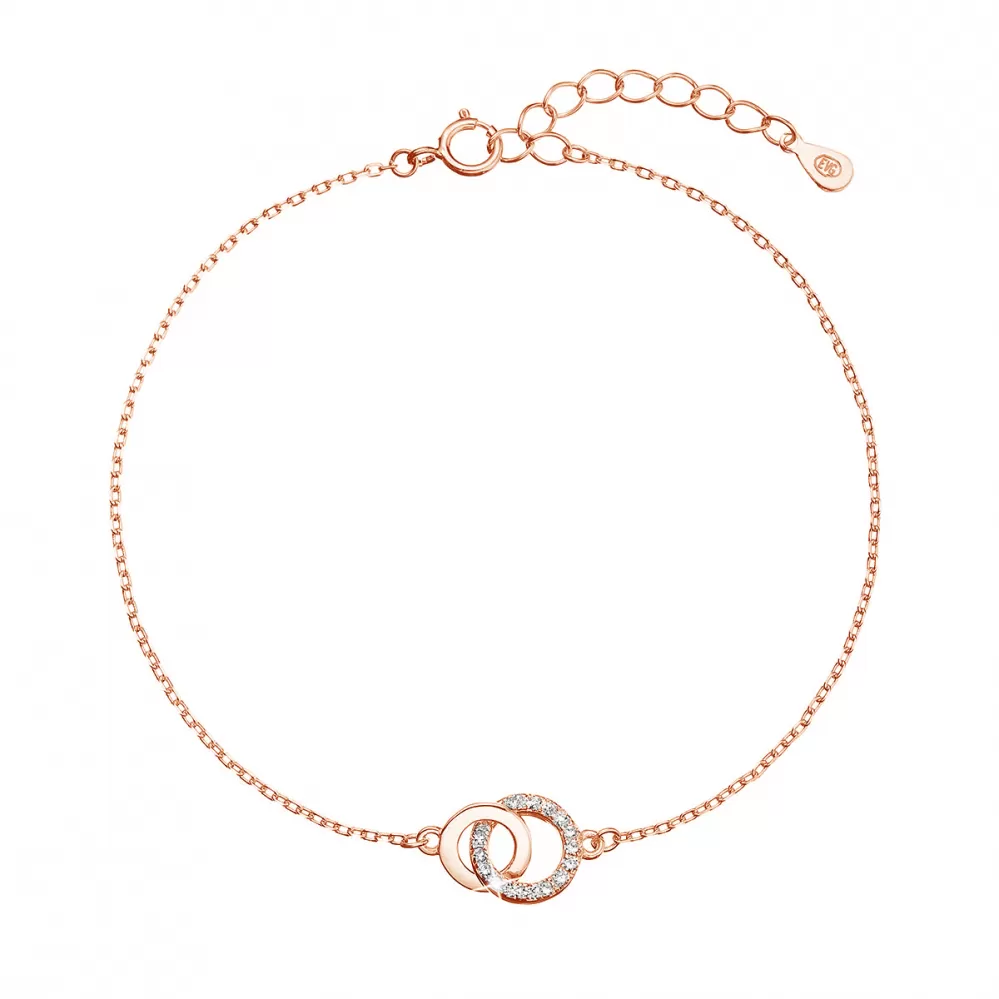 Pozlátený strieborný ROSE náramok krúžky so zirkónmi 13033.1 crystal