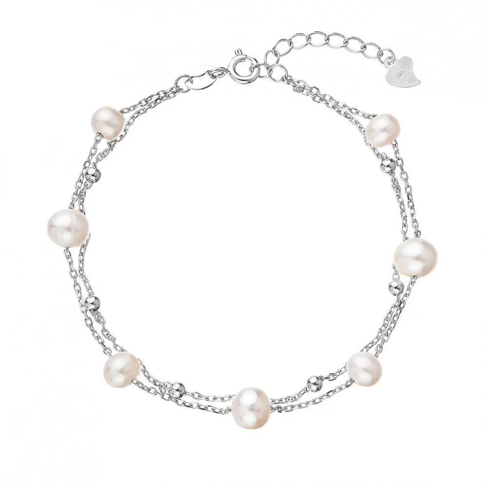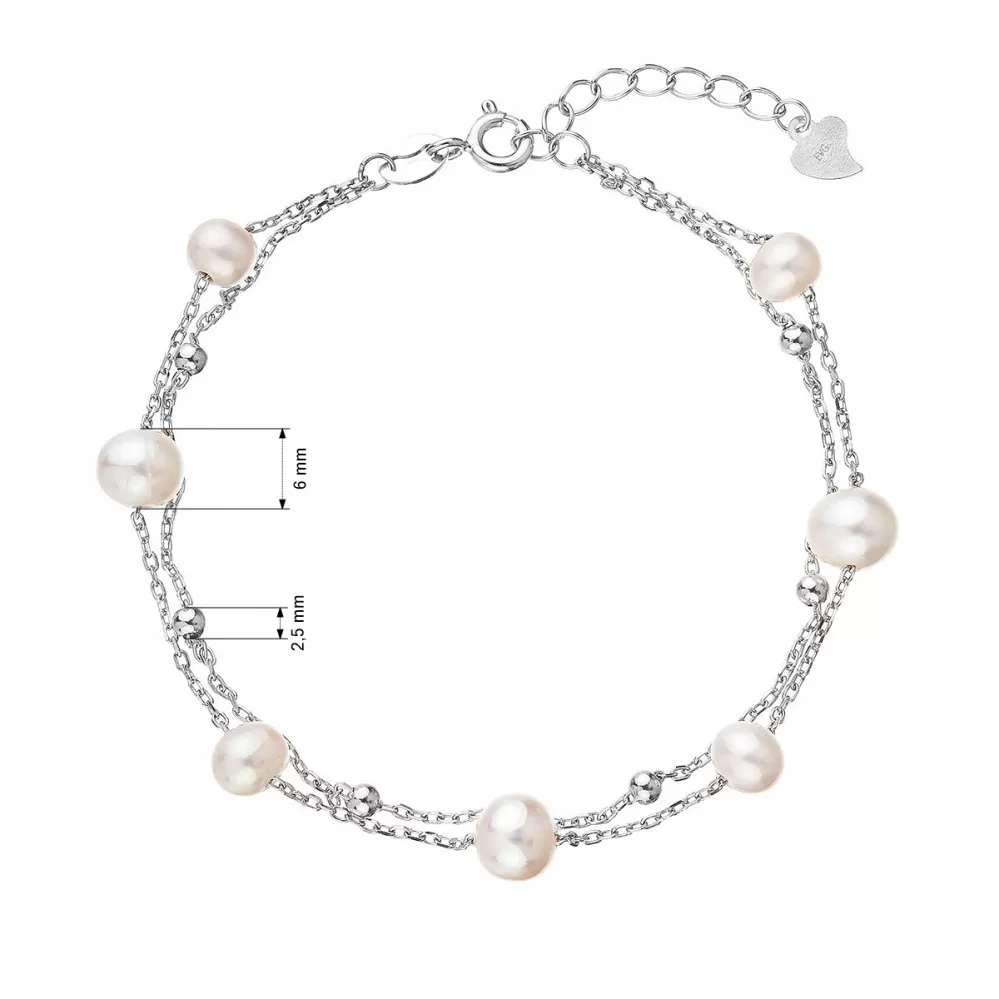 Strieborný náramok dvojitá retiazka s riečnymi perlami a guličkami po obvode 23019.1