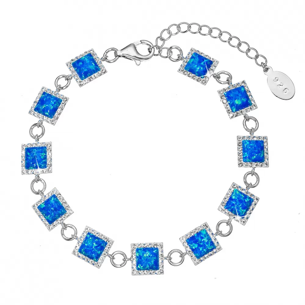 Strieborný náramok s modrým syntetickým opálom štvorec a biele kryštály Preciosa 33047.1 blue