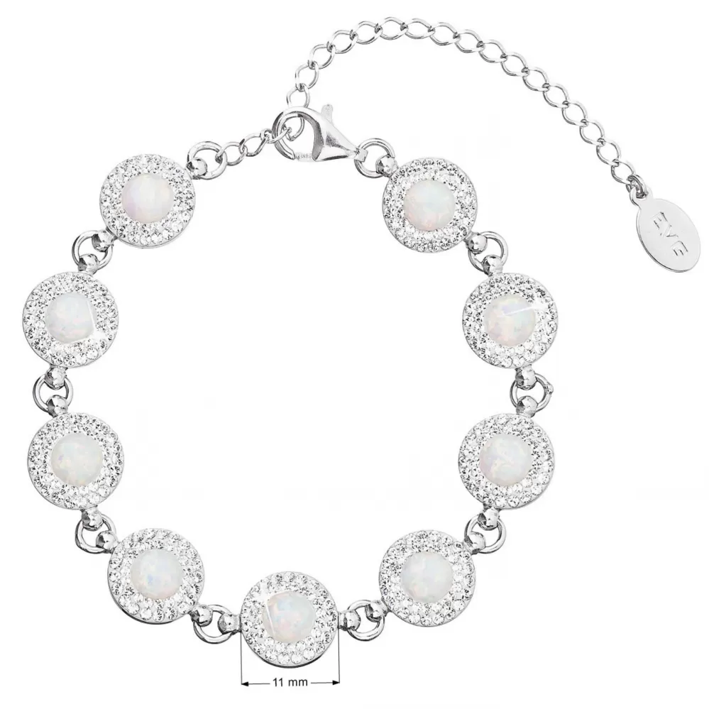 Parametre strieborného náramku so syntetickým opálom a kryštálmi Preciosa biely 33105.1