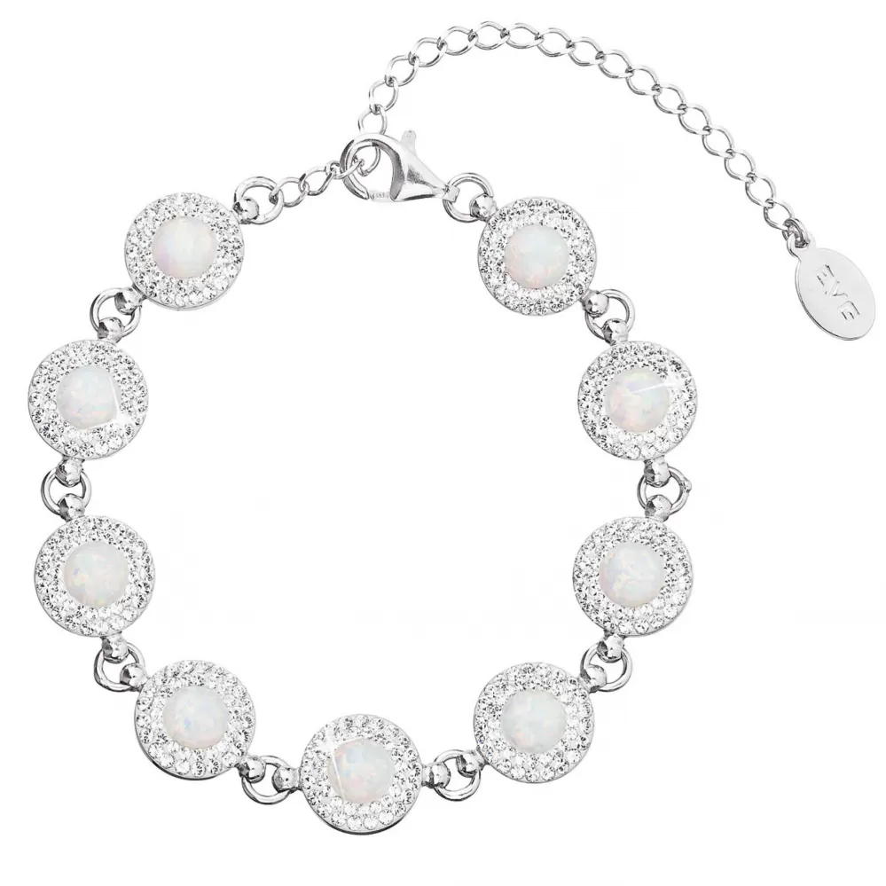 Strieborný náramok so syntetickým opálom a kryštálmi Preciosa biely 33105.1