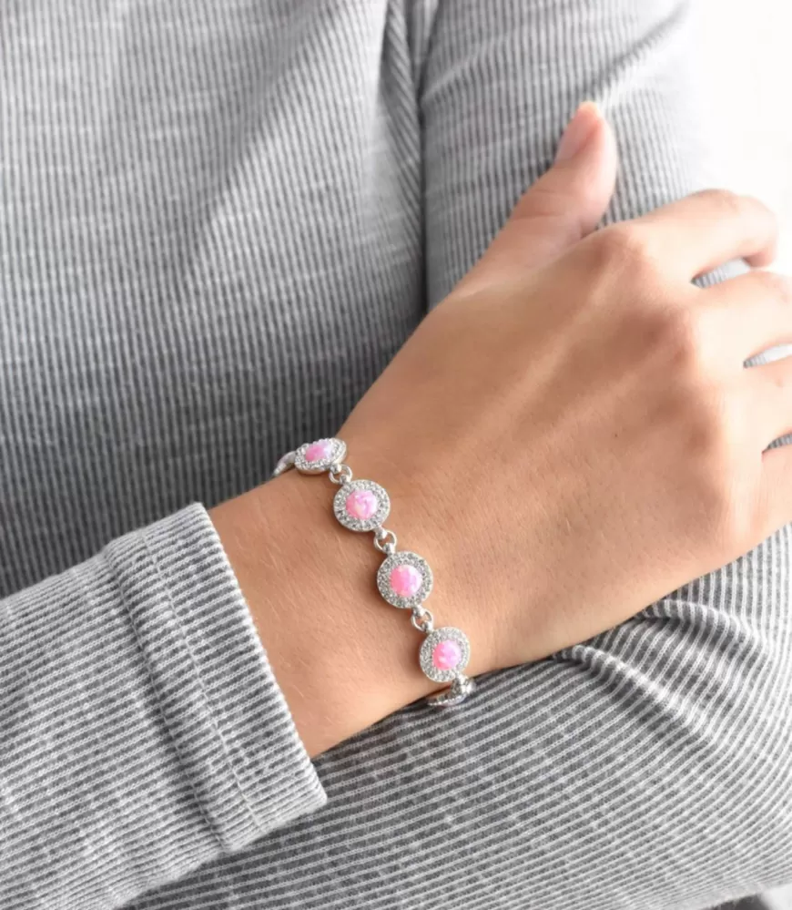 Strieborný náramok so syntetickým opálom a kryštálmi Preciosa ružový 33105.1