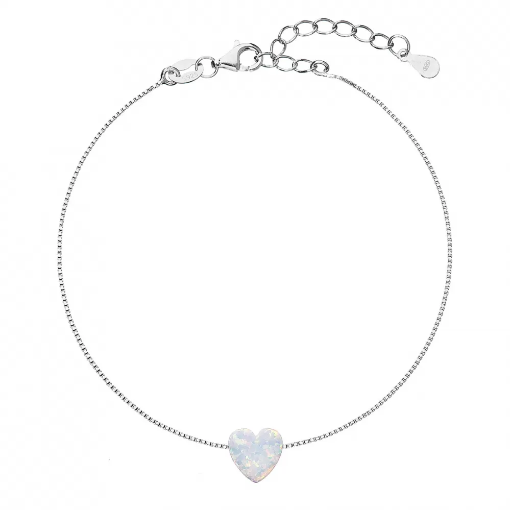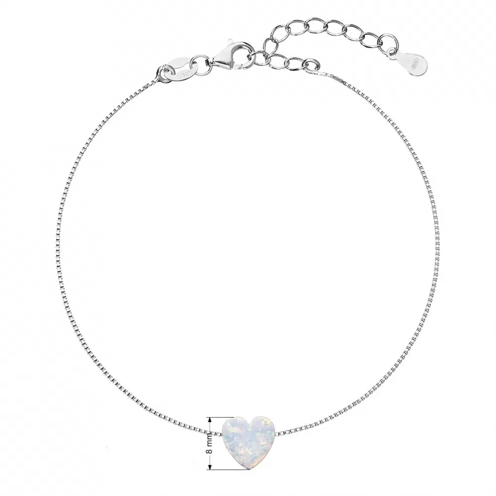 Strieborný náramok so syntetickým opálom biele srdce 13018.1