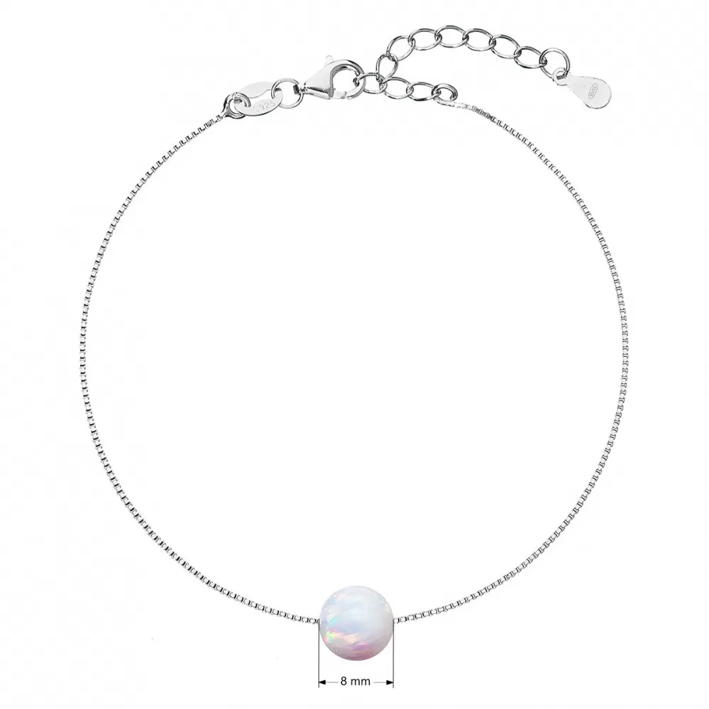Parametre strieborného náramku so syntetickým opálom biely okrúhly 13019.1