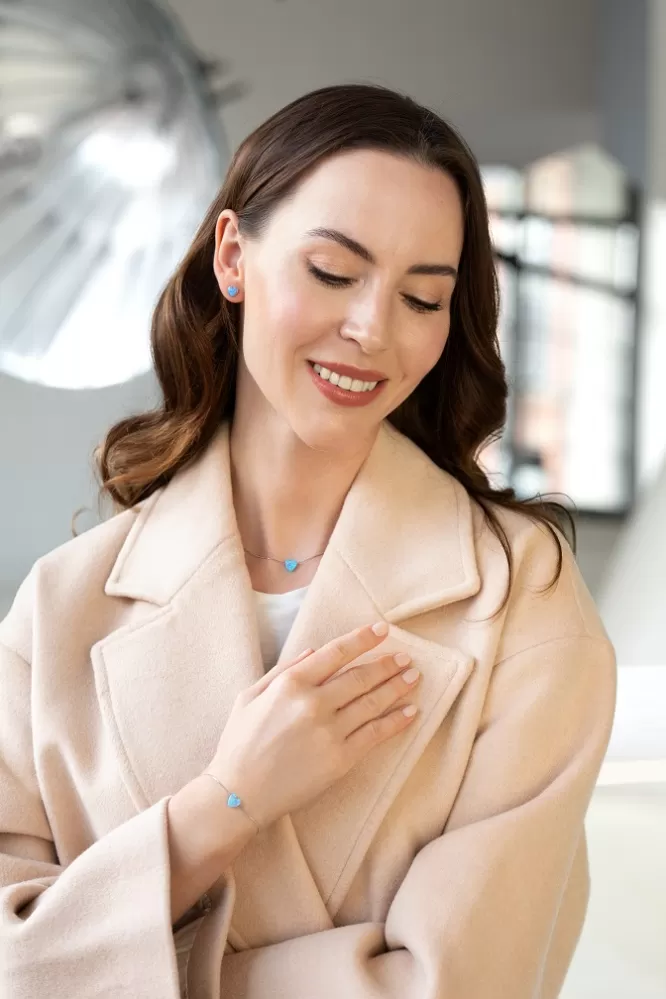 V krásnom letnom období nechajte vaše zápästie zvýrazniť jemným strieborným náramkom s opálom tvaru srdiečka.