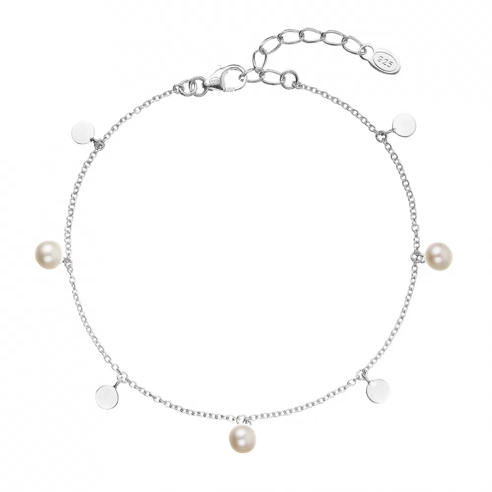 Strieborný náramok tri perličky striedavo so striebornou placičkou 23027.1