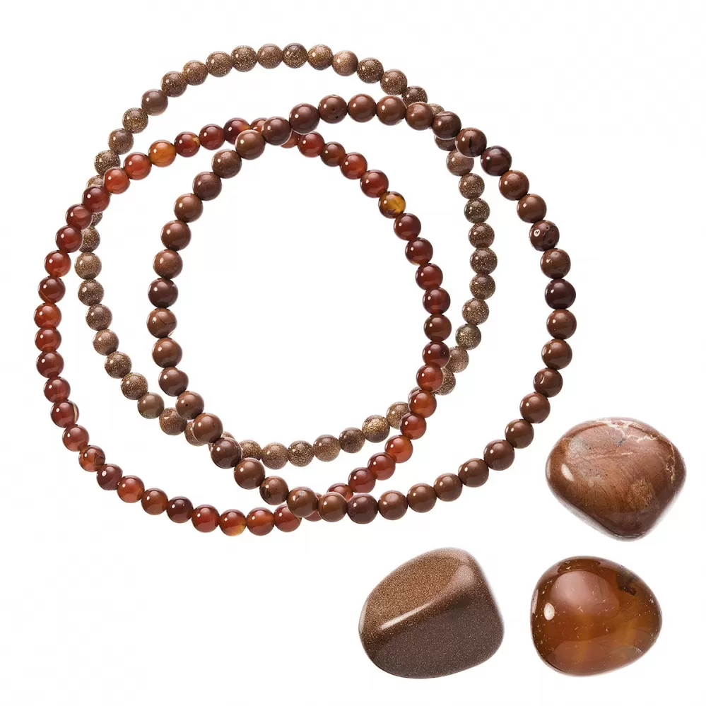 Svetlo hnedé až červenkasté farby s luxusnými zlatistými odleskami sú náramky z prírodných minerálnych kameňov. Navyše blahodárne pôsobí na duševnú a fyzickú rovnováhu. Každý, z troch náramkov, je vyrobený z kameňov, ktoré majú rôzne vlastnosti a energie. Popis každého druhu si môžete prečítať nižšie. Tento jemný náramok sa skladá z okrúhlych kamienkov, ktoré sa krásne farebne aj energicky dopĺňajú. Kamienky sú navlečené na elastickom vlákne, čo je vhodné pre rôzne veľkosti zápästia. Náramky sú skvelým darčekom pre každého, kto má rád prírodnú krásu a zaujíma sa o alternatívne spôsoby starostlivosti o duševnú a fyzickú pohodu.