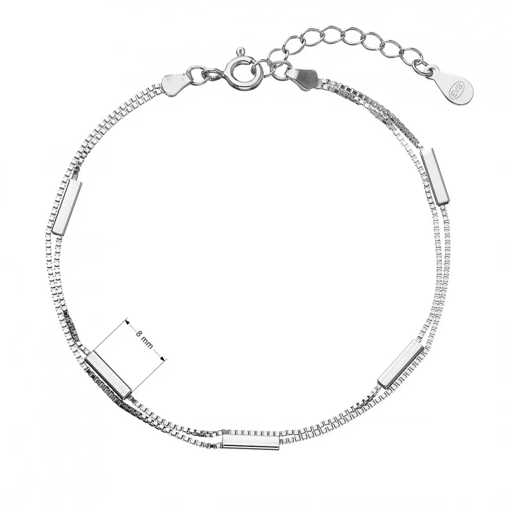Strieborný náramok dvojitá retiazka s obdĺžnikmi 63005